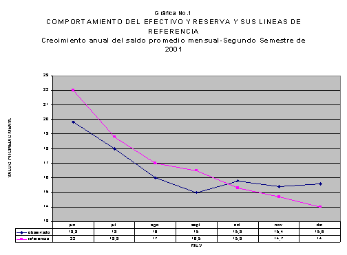 En los gráficos 1 y 2 puede observarse el comportamiento del efectivo y de los medios de pago ampliados respectivamente donde se muestra su tendencia en el año 2001.