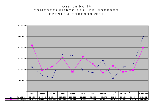 Conociendo la importancia que reviste el manejo de los recursos de tesorería como fuente para atender los compromisos de caja, se ha realizado un análisis sobre el comportamiento de ingresos y gastos reales durante el año 2001, con el fin de conocer los periodos críticos del PAC de la Dirección Distrital de tesorería, analizando cuáles fueron las causas y consecuencias en sus finanzas.